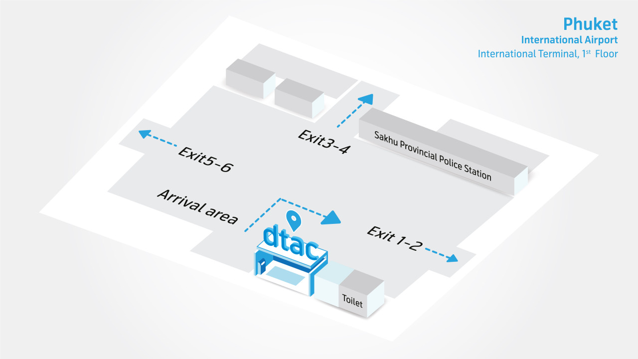- 18세 이상의 성인만 심카드를 구입, 이용하실 수 있습니다. - 푸켓 국제 공항 DTAC 카운터는 매일 06:00-23:00 운영합니다.