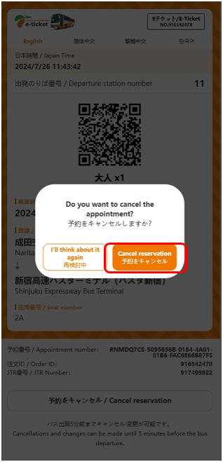 1. 예약 취소 선택 2.확인 후, 예약 취소를 클릭 3.버스 재예약 가능