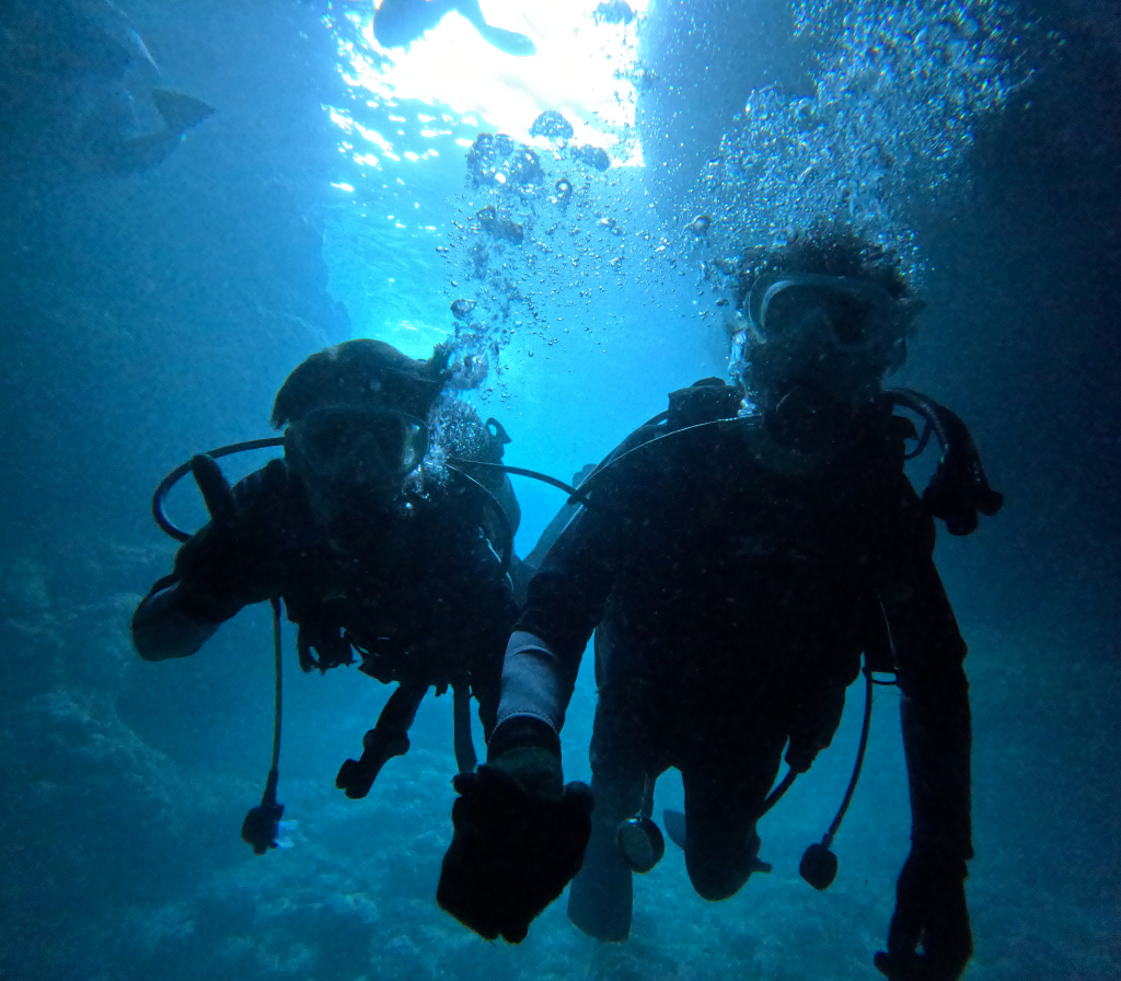 오키나와의 푸른 동굴은 태양빛과 푸른 바다가 만들어낸 기적의 장소입니다. 석회암 지형에 의해 형성된 절벽으로, 바닷물의 침식으로 인해 동굴이 형성되었으며, 태양빛이 동굴 속 수면에 반사되어 빛나며 몽환적인 푸른빛을 띠고 있어 '푸른 동굴'이라 불립니다. 이곳에서는 일 년 내내 스노클링이나 다이빙을 할 수 있습니다. 투명한 바닷속을 즐길 수 있는 다이빙을 즐겨보세요!