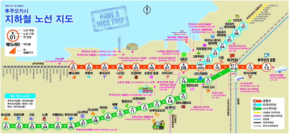 후쿠오카지하철 전 노선(공항선空港線, 하코자키선箱崎線, 나나쿠마선七隈線)을 1일간 무제한으로 이용하실 수 있습니다. 후쿠오카 지하철 요금은 비싼 편입니다. 자유롭게 이동을 고려한다면 구입을 하는 것을 추천 드립니다.