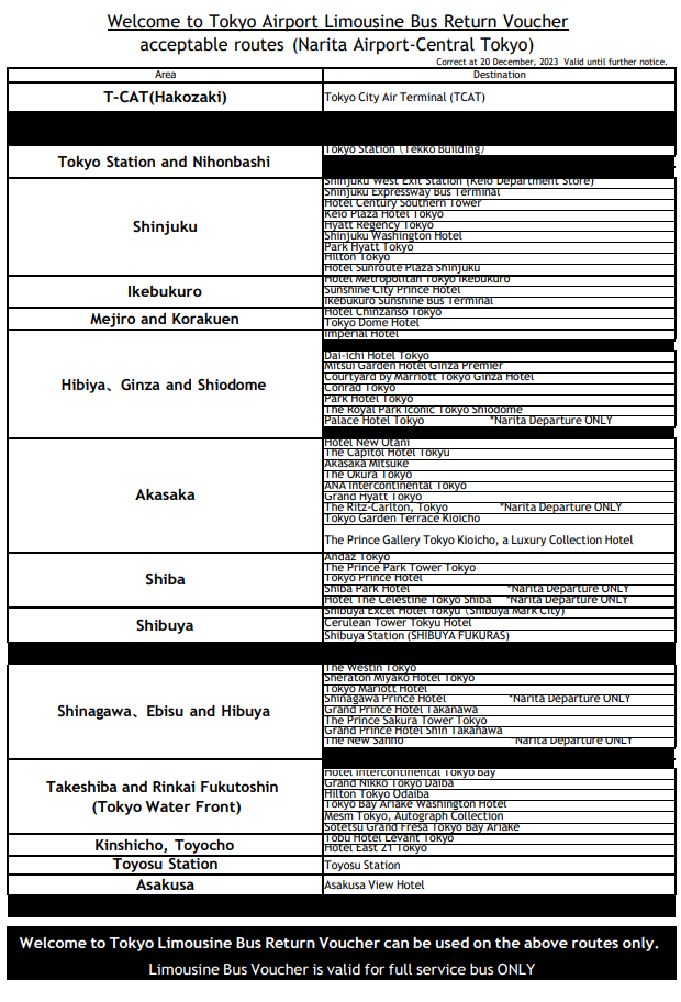 교환카운터에서 받은 승차권의 절반을 가지고 버스승차장에서 QR코드로 교환해 주세요. 돌아오는 티켓의 유효기간은 발행일로부터 14일이내입니다. 돌아오는 티켓의 공항행 버스예약은 출발5분전까지 QR코드로 교환해 주세요. ※ 공항행 버스를 호텔에서 탑승 시, 호텔 프론트에서 사전 예약 필수입니다. ※ 도쿄 메트로 2일권은 48시간, 3일권은 72시간 동안 사용 가능합니다. ※ 도쿄 메트로 패스의 티켓 개시는 개찰기에 티켓을 넣은 순간부터 카운트됩니다. ※ 도쿄 메트로 패스로 이용 가능한 노선은 도에이선과 도쿄 메트로선입니다. (JR선 및 모노레일 이용불가)