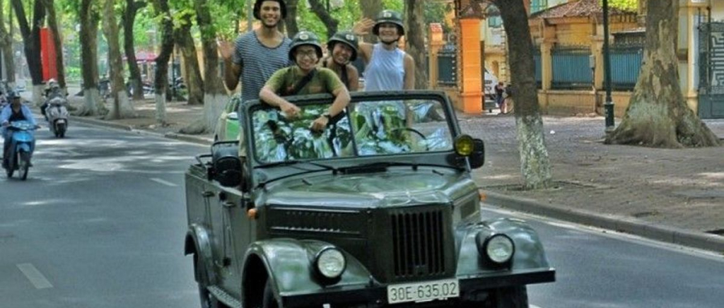 올드 쿼터 지역 내 픽업 & 드랍 베트남 인민군 지프차량 숙련된 운전사 베트남인 영어 가이드 포함된 음식 및 음료