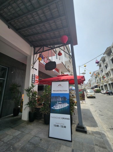 하노이 - 하롱베이 편도 2시간 30분 정도 소요됩니다. 파라다이스 그룹의 호텔, 파라다이스 스윗 호텔 도착 후 체크인을 진행합니다. 체크인은 Saigon 건물에서 이루어지며, 각 파라다이스 엘레강스, 그랜드 크루즈의 체크인 장소입니다. 건물을 바라보고 각 왼쪽 입구와 오른쪽 입구입니다. ( 파라다이스 그랜드는 오른쪽 입니다.) 하롱베이에서 합류하시는 경우, 이곳으로 오전 11:30까지 방문 하시면 됩니다. 보딩 타임은 12시 ~ 12시 30분 이기에 그때까지 호텔 내/외부에서 휴식을 취하고 계시면 됩니다