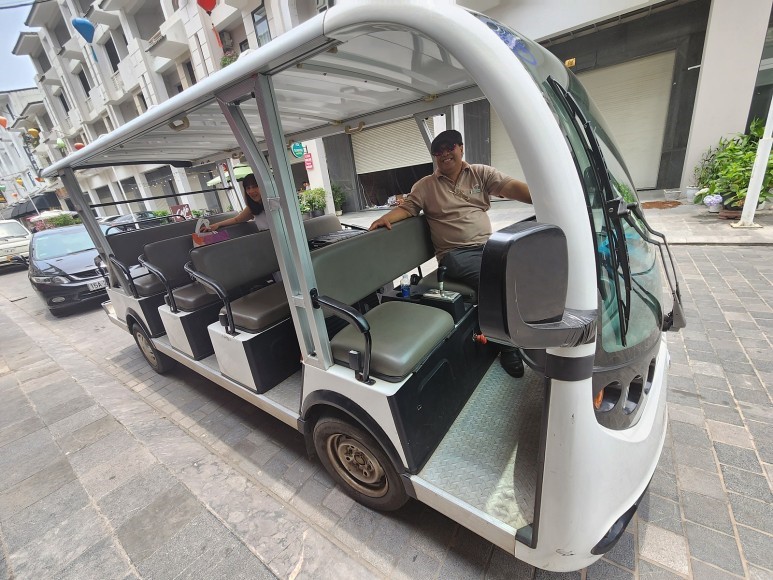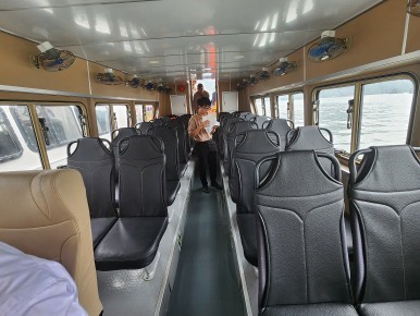 이후 직원분들의 안내에 따라 정오 경, 전기타를 타고, 항구로 이동합니다. 전기차에서 내리시면 파라다이스 그룹의 항구에서 작은 스피드 보트로 탑승합니다. 파라다이스 그랜드 크루즈로 이동하며, 이동시간은 약 20분 입니다. 승선 후, 식당에서 크루 소개와 안전관련 브리핑을 받습니다