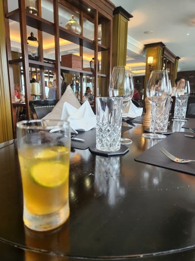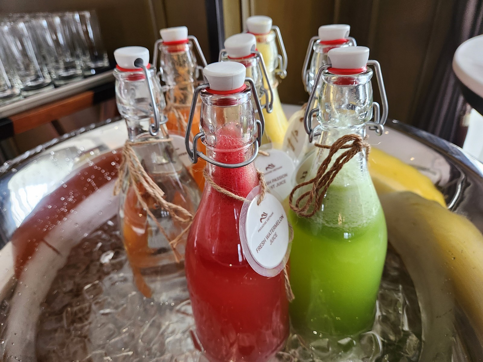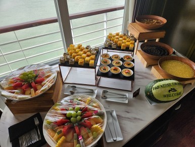 복귀후 크루즈에서 시원한 쥬스가 제공되며 피아노 바에서 홈메이트 쿠기와 빵, 차와 커피가 무료로 제공됩니다.
