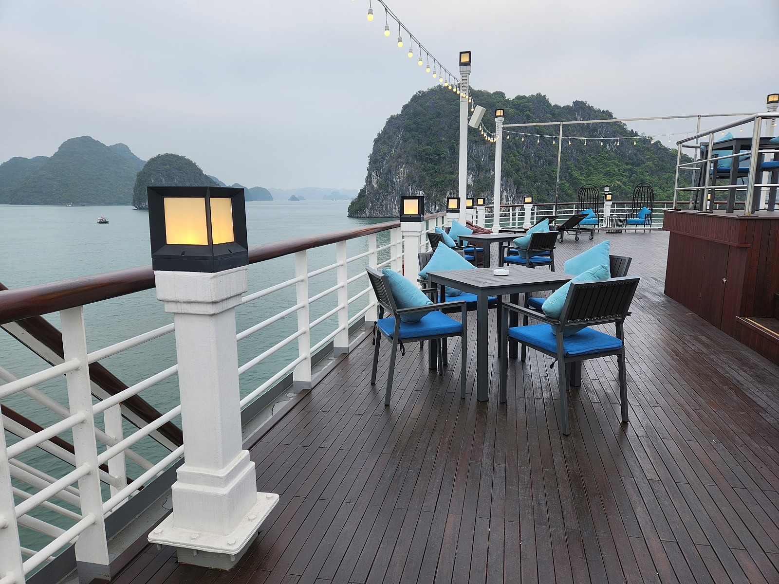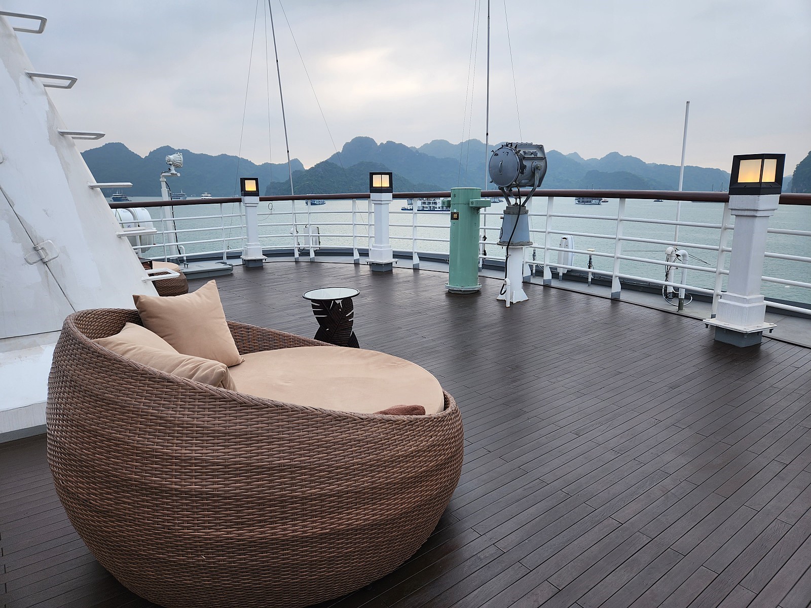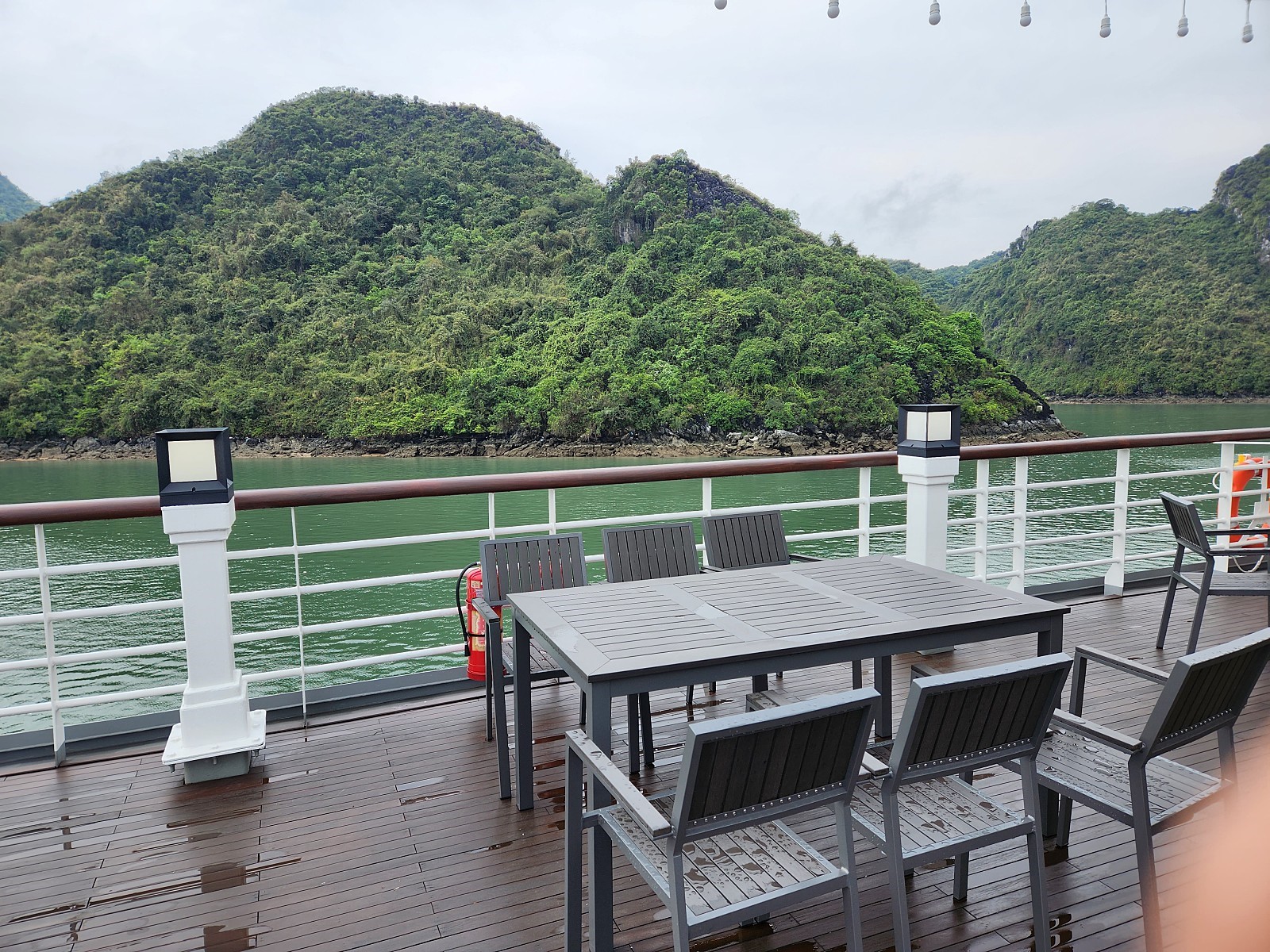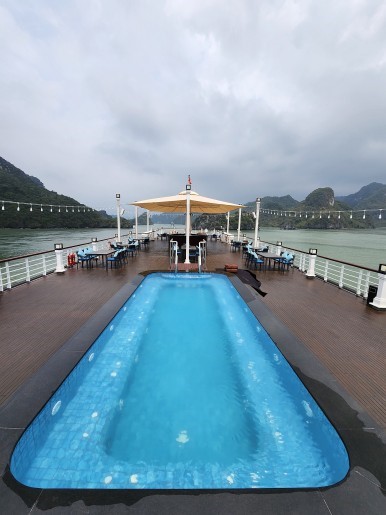 점심 식사 후 다음 일정까지 휴식을 취합니다. 선상에서 보이는 하롱베이 풍경이 참 예쁩니다 중식 식사 후 부터 언제든지 수영장 이용이 가능합니다.