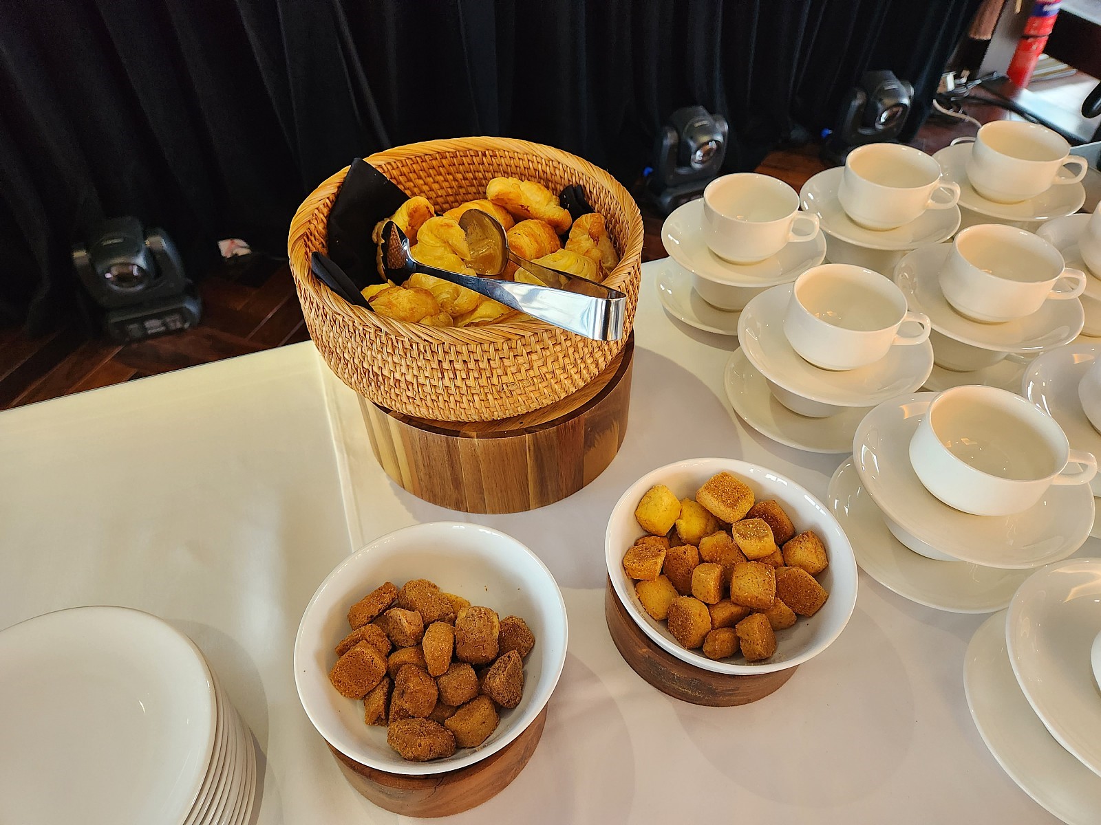 오전 6시, 선덱에서 베트남 체조 시간이 있습니다. 이번엔 탑승객이 적고 지원자도 없어 아쉽게도 진행하지 않았습니다. 이후 간단한 조식이 제공됩니다. 빵과 쿠키, 커피 그리고 티 가 제공되며 아침을 깨우는 시간입니다