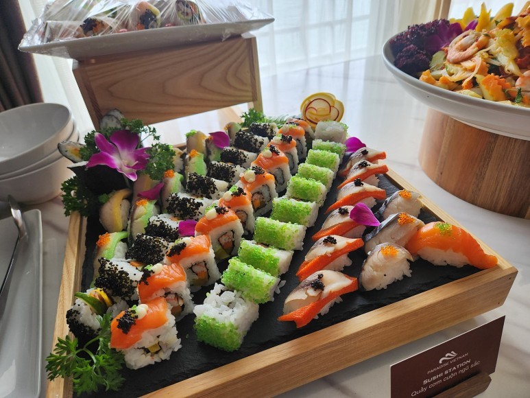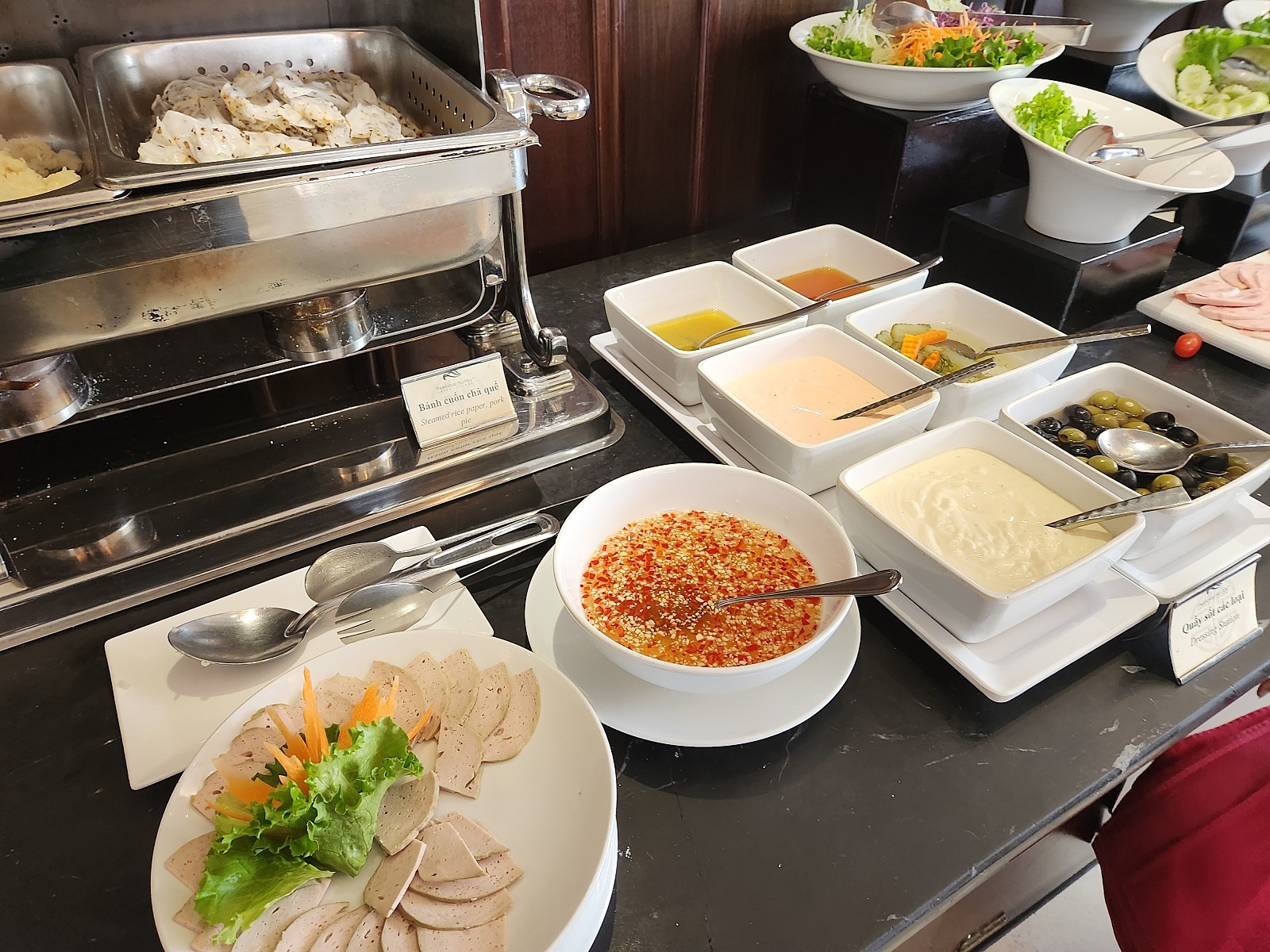 브런치를 즐기신 후 오전 10시경 보트에서 하선을 하고 스피드 보트를 이용, 항구로 복귀합니다. 준비된 전기차를 타고 체크인 했던 호텔로 돌아가며 여정이 끝을 맺습니다. * 아이러브베트남을 통해 파라다이스 엘레강스 크루즈와 VIP 리무진픽업을 동시에 예약하신 경우, 파라다이스 스윗 호텔에서 부페 런치 또는 간단한 점심 도시락을 추가로 제공해 드립니다. (단, 왕복 리무진 포함된 예약시) 11시경 부터, 준비된 점심을 드신 후, 크루즈 직원들의 안내에 따라 리턴 리무진을 타시면 투어 일정이 종료 됩니다. 리턴 리무진은 정오에 출발하며, 하노이 도착 예정 시간은 약 오후 2시 30분 정도 입니다. 아래 사진은 호텔에서 제공되는 간단한 뷔페 입니다. 그날 식사 인원에 따라, Ha Long 빌딩에서 뷔페 또는 도시락이 제공됩니다. 복귀 차량 배정은, 직원들이 안내드립니다
