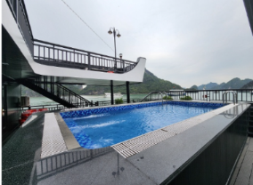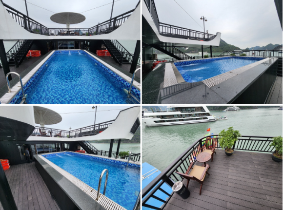 점심 식사 후 다음 일정까지 휴식을 취합니다. 선상에서 보이는 하롱베이 풍경이 참 예쁩니다 중식 식사 후 부터 언제든지 수영장 이용이 가능합니다.