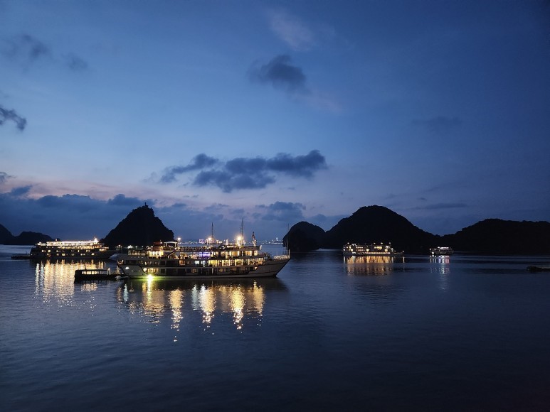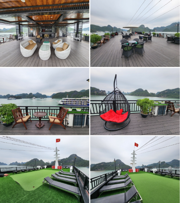 밤부보트 탑승 체험 모든 투어가 끝난 뒤 선덱에서 선셋 파티와 쿠킹 클래스가 진행됩니다. 음료 행사와 무료로 간식 거리가 제공되며 이후 선덱에서 쿠킹클래스가 진행됩니다 시원한 하롱베이 바닷바람을 맞으며 맛있는 음료 한잔으로 분위기를 띄우고 베트남 음식을 만들어보는 시간을 가질 수 있습니다. 특히 이시간대에 선덱에 설치된 자꾸지에서 시간을 보내시는것도 좋은 방법입니다