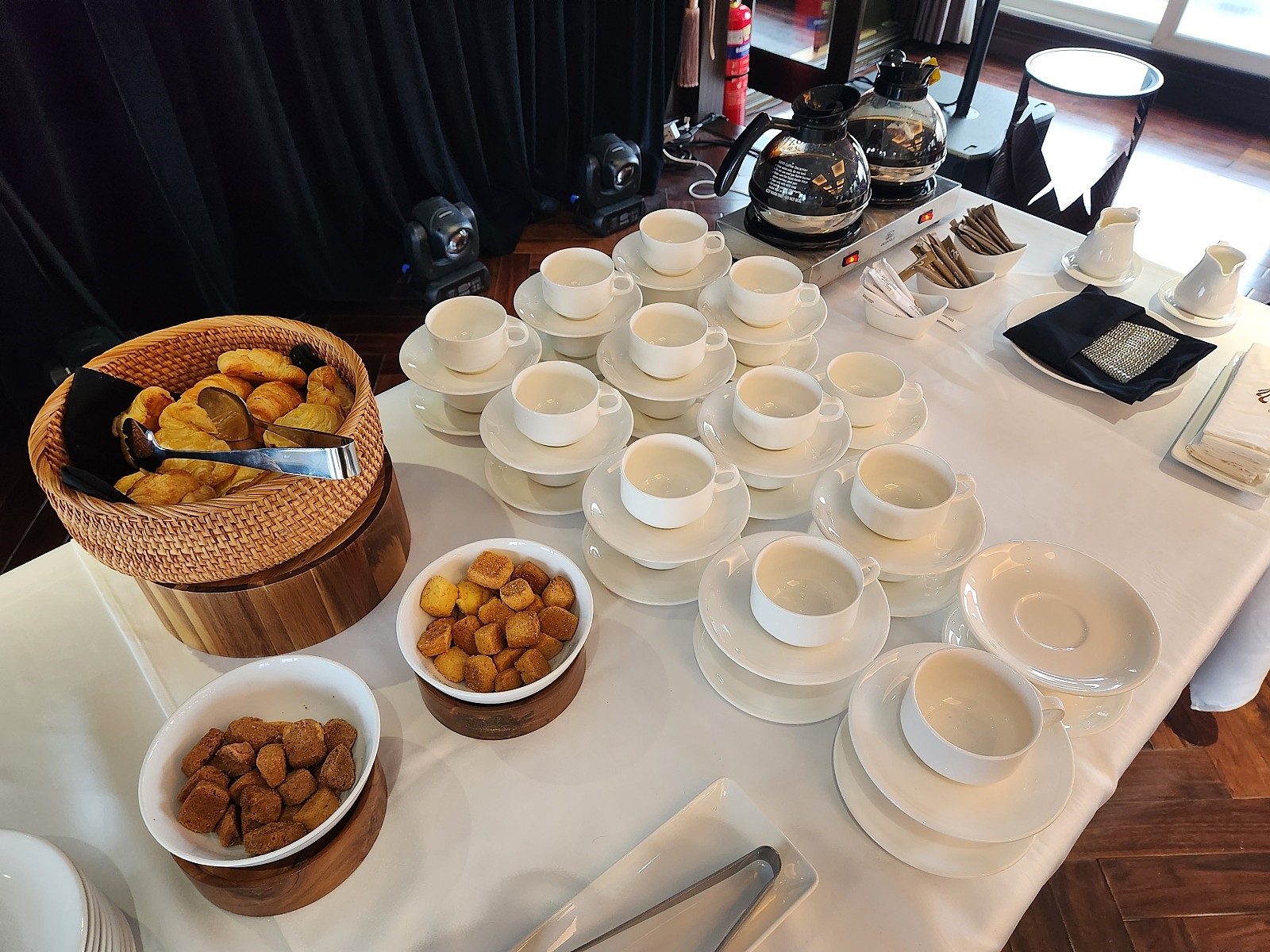 오전 6시, 선덱에서 베트남 체조 시간이 있습니다. 이번엔 탑승객이 적고 지원자도 없어 아쉽게도 진행하지 않았습니다. 이후 간단한 조식이 제공됩니다. 빵과 쿠키, 커피 그리고 티 가 제공되며 아침을 깨우는 시간입니다