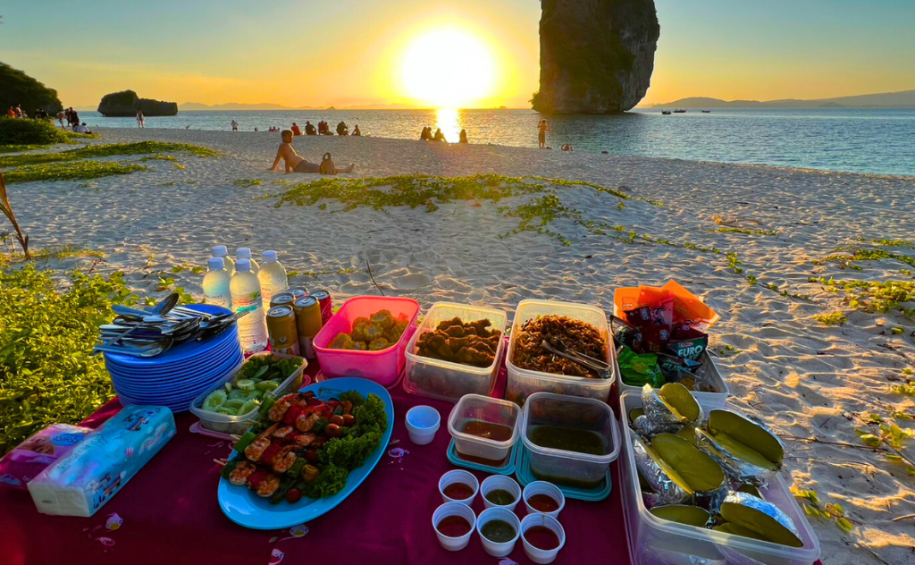 프라낭 동굴 해변 (Phra Nang Cave Beach) 석회암 절벽 감상, BBQ 식사