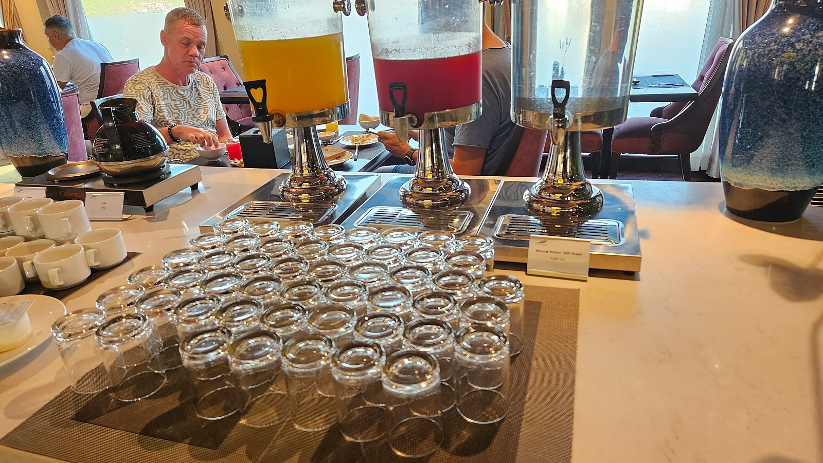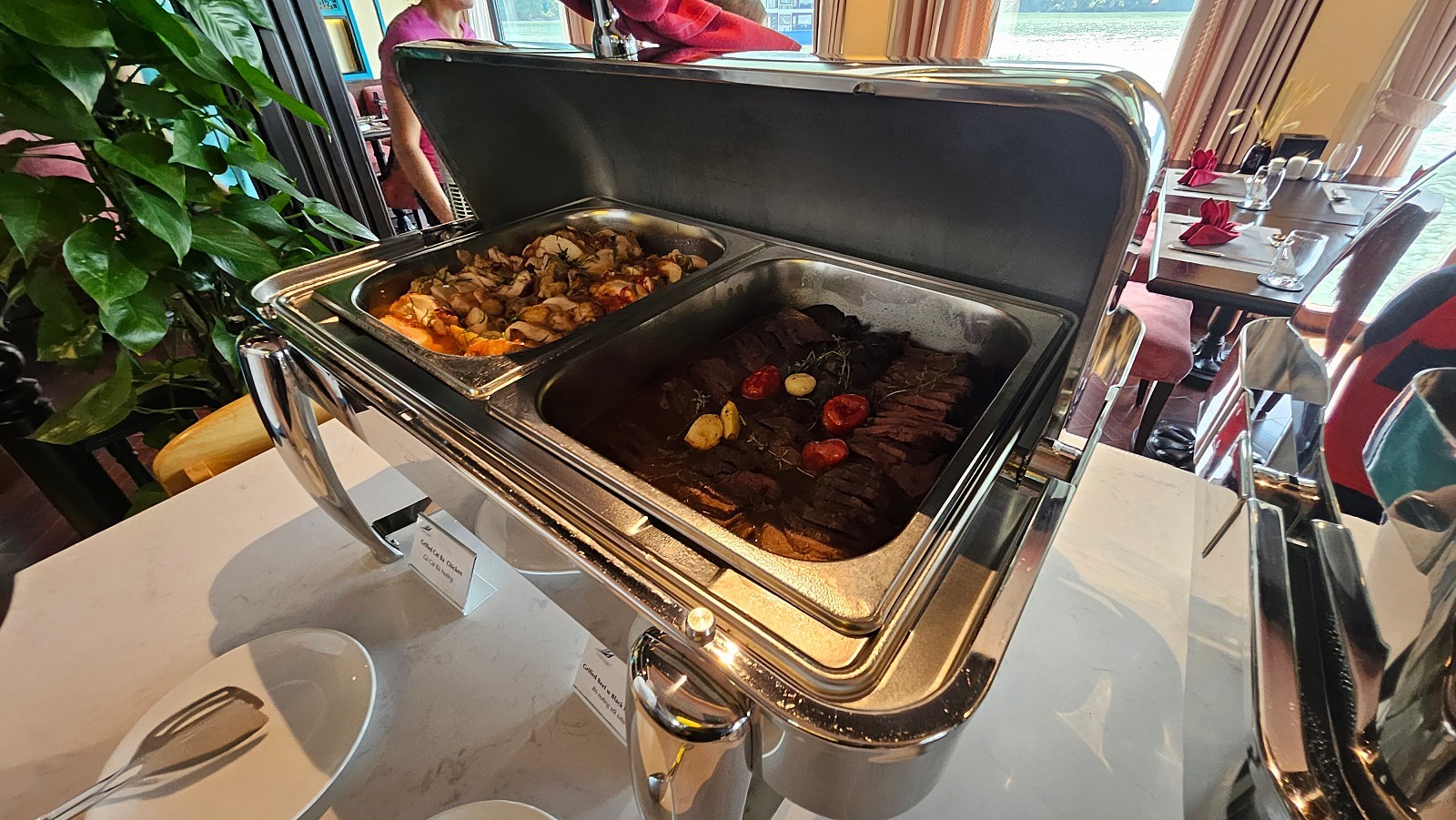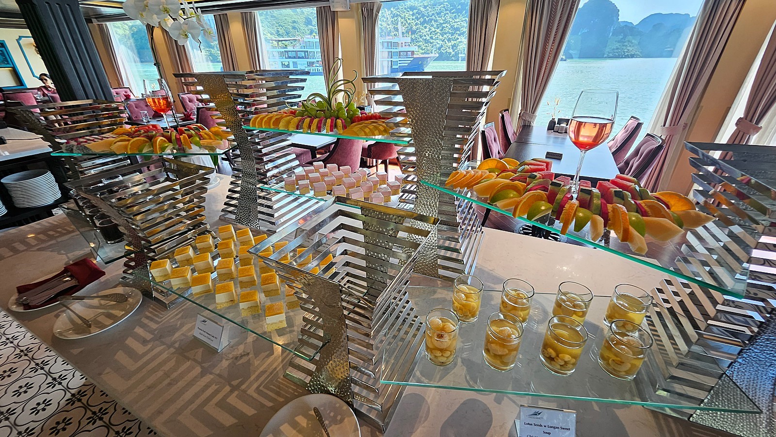 승선 후 객실에서 잠시 짐을 풀고 바로 오후 1시부터 중식이 제공됩니다. 중식 퀄리티는 아주 좋은 편입니다. 양식 + 현지 퓨전 음식으로 주로 제공됩니다. 서양인 탑승객들 위주로 빵이나 디저트류도 많이 준비되어 있습니다.