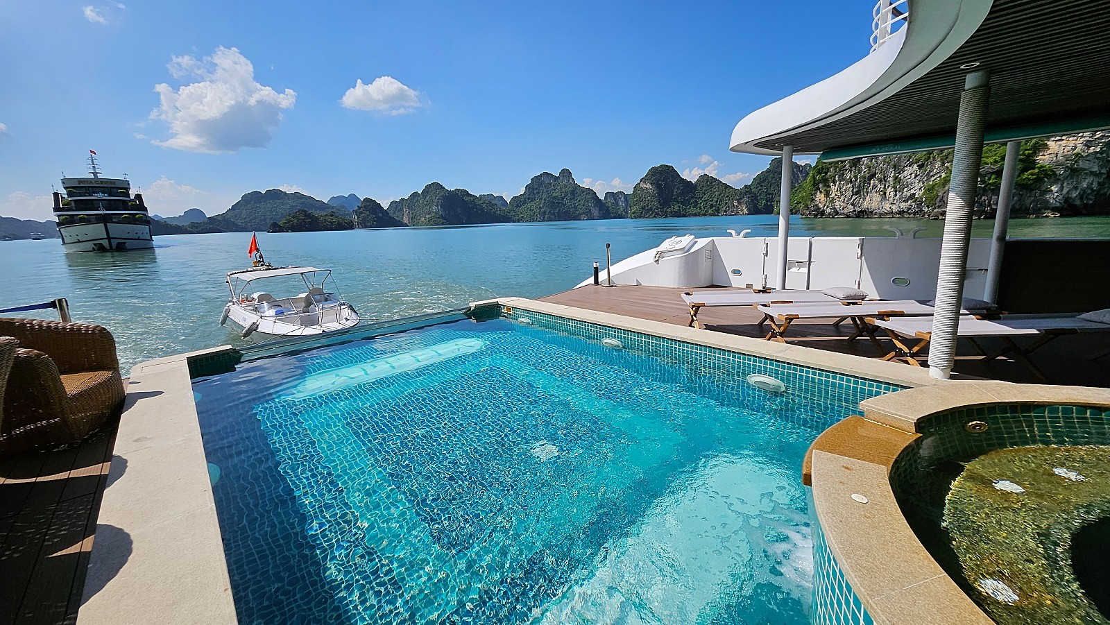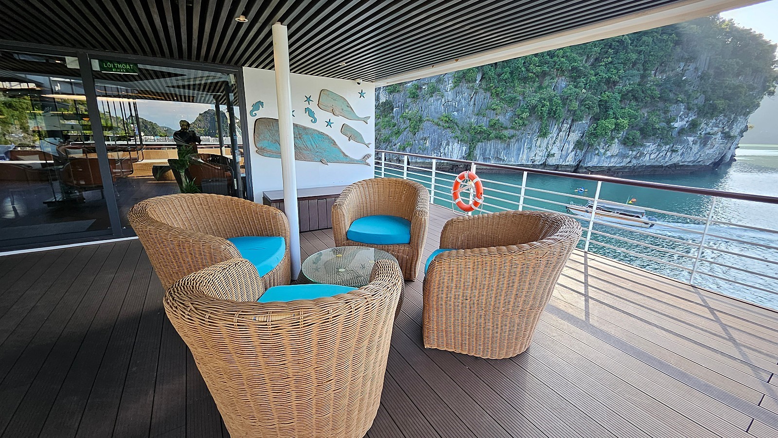 포커룸에서, 다른 승객들과 게임을 진행하실 수 있습니다 (실제 돈을 걸진 않습니다) 선덱에서 하롱베이를(하롱베이와 아주 흡사한 짱안) 배경으로 찍은 영화(킹콩)을 상영합니다. 시즌에 따라 간단한 오징어 낚시를 즐기실 수 있습니다.