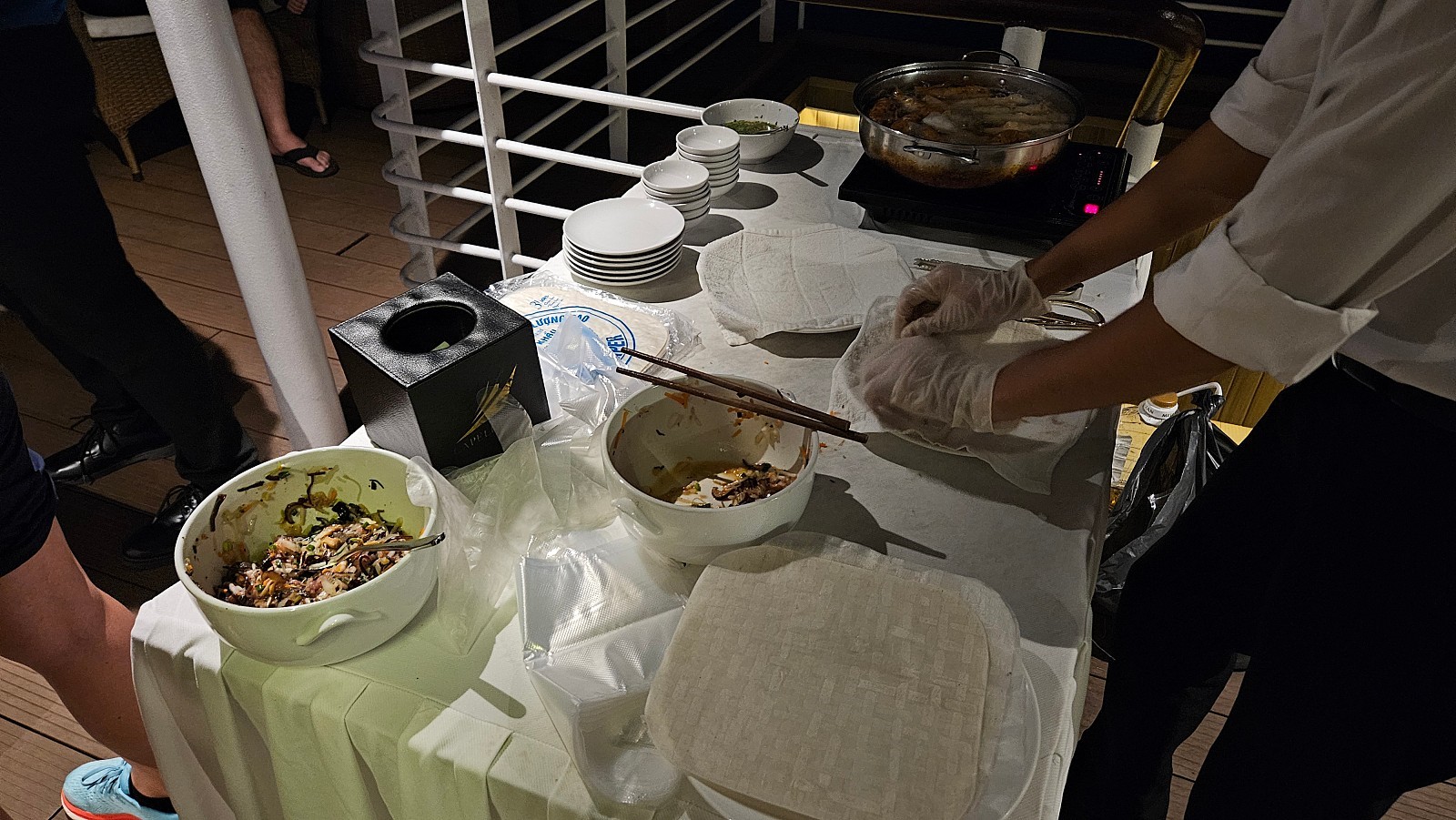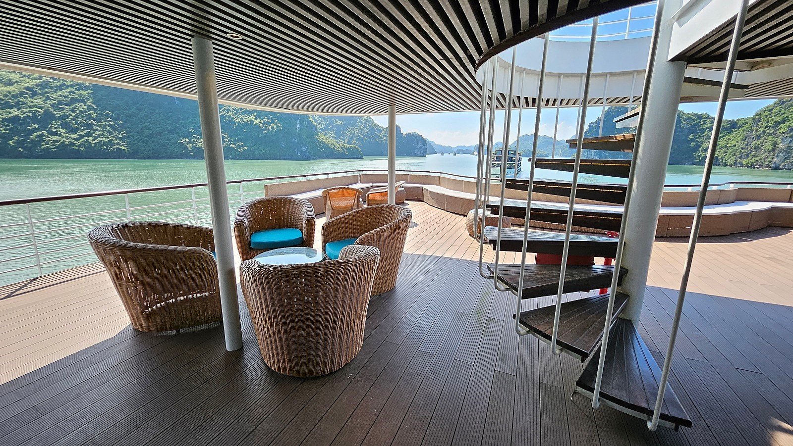 오전 6시, 선덱에서 베트남식 체조를 진행합니다. 이후 6시 15분 부터 레스토랑에서 조식이 제공됩니다.