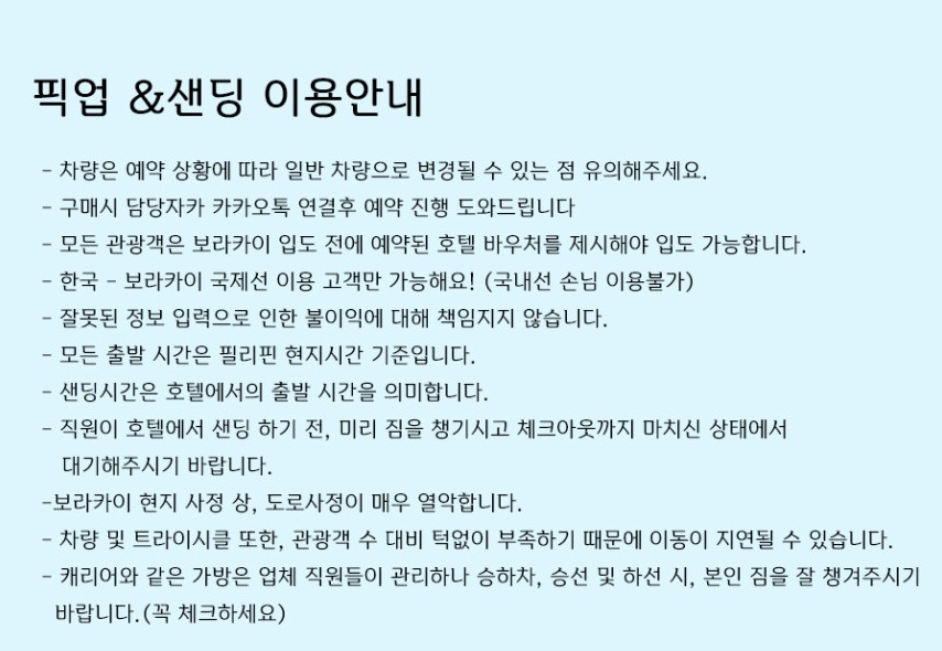 [보라카이] 조인 단체 픽업/샌딩 왕복