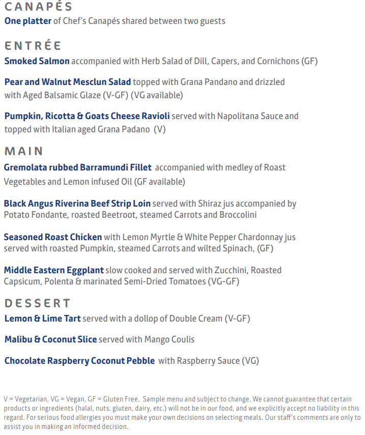 캡틴 쿡 디너 크루즈 탑승은 Circular Quay No.6 Jetty, No.1 King St Wharf Darling Harbour 두곳에서 가능합니다. - 출발시간 17:00, 17:30, 19:00, 19:30 탑승시간 최소 30분전까지 도착하여 항구 캡틴 쿡 크루즈 오피스에서 바우처를 티켓으로 교환하면 탑승준비 완료! 메뉴는 계절 및 당일 사정에 의해 변동될 수 있습니다. 모든 코스는 라이브 뮤직과 무용 공연이 포함되어 있습니다. 좌석은 미리 지정되지않고 탑승 당일 직원의 안내에 따라 좌석을 배정받을 수 있습니다. 세계적인 미항인 시드니 하버의 매혹적인 야경을 약 2시간동안 크루즈 여행을 하며 근사한 저녁 식사를 할 수 있습니다. 가족과 연인, 친구들과 잊지 못할 추억을 간직할 수 있습니다.