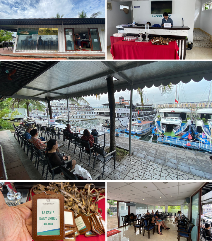 픽업 차량: 7인승 리무진 / 15인승 리무진 픽업 시간: 오전 7시 전후 픽업 차량은 7인승 리무진 / 15인승 리무진등 리무진급 차량이 배정됩니다. 크루즈에서 생수도 사 드셔야 하므로(2만동) 기본적인 물이나 간식을 미리 준비 하시면 좋습니다. 차 안에서 혹은 하롱베이 도착 후 간단히 드실 간식을 준비 하시면 좋습니다. 하롱베이 뚜언 초우 항구의 체크인 라운지 입니다. 두 대의 보트가 인원에 따라 운영됩니다. 오전 10시 30분경, 탑승이 시작됩니다.