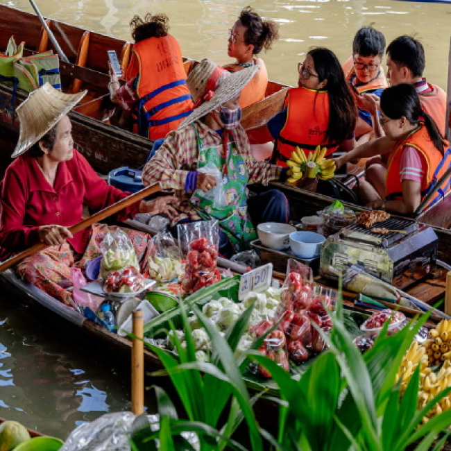 방콕 여행하면 가장 먼저 떠오르는 것들이 있으신가요? 매년 여행객들이 선호하는 방콕 여행지 중 단연 빠질 수 없는 유명 관광지인 담넌사두억 수상시장, 위험한 기찻길, 카오산로드 그리고 동남아의 꽃인 야시장까지! 하루만에 둘러볼 수 있는 가성비 갑 프라이빗 단독 투어랍니다. 방콕에서 약 1시간 30분 가량 떨어져있는 담넌사두억 수상시장과 위험한 기찻길 시장을 방문해요. 롱테일 보트를 타고 좁은 운하를 지나며 물위에 지어진 여러 기념품샵과 다양한 음식을 맛볼 수 있어요. 아슬아슬하게 시장길로 들어오는 기차 또한 진풍경을 이룬답니다. 다시 방콕으로 돌아와 카오산로드에서 자유시간을 보내며 맛집 탐험을 해보세요. 맛있고 다양한 길거리 음식과 식당들이 즐비해있어요. 마지막으로 아시아티크 또는 쩟페어 야시장 중 택 1 하여 야시장에서 일정을 마무리해보세요