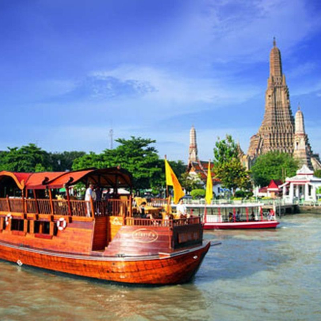 낮과는 대조되는 천사의 도시의 밤을 차오 프라야 강을 지나며 잊을 수 없는 맛과 향을 느껴보세요.